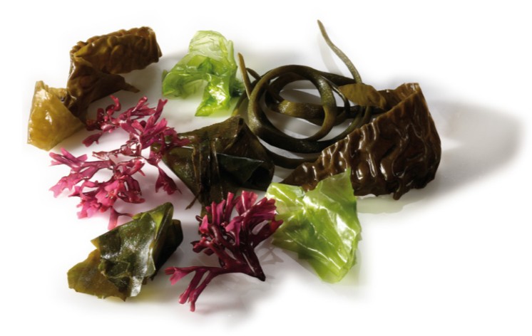 Lattuga di mare (Ulva), Dulse (Palmaria Palmata), Fagiolini di mare (Himanthalia Elongata), Kombu (Laminaria Saccharina o Laminaria Digitata) o Wakame (Undaria Pinnatifida)